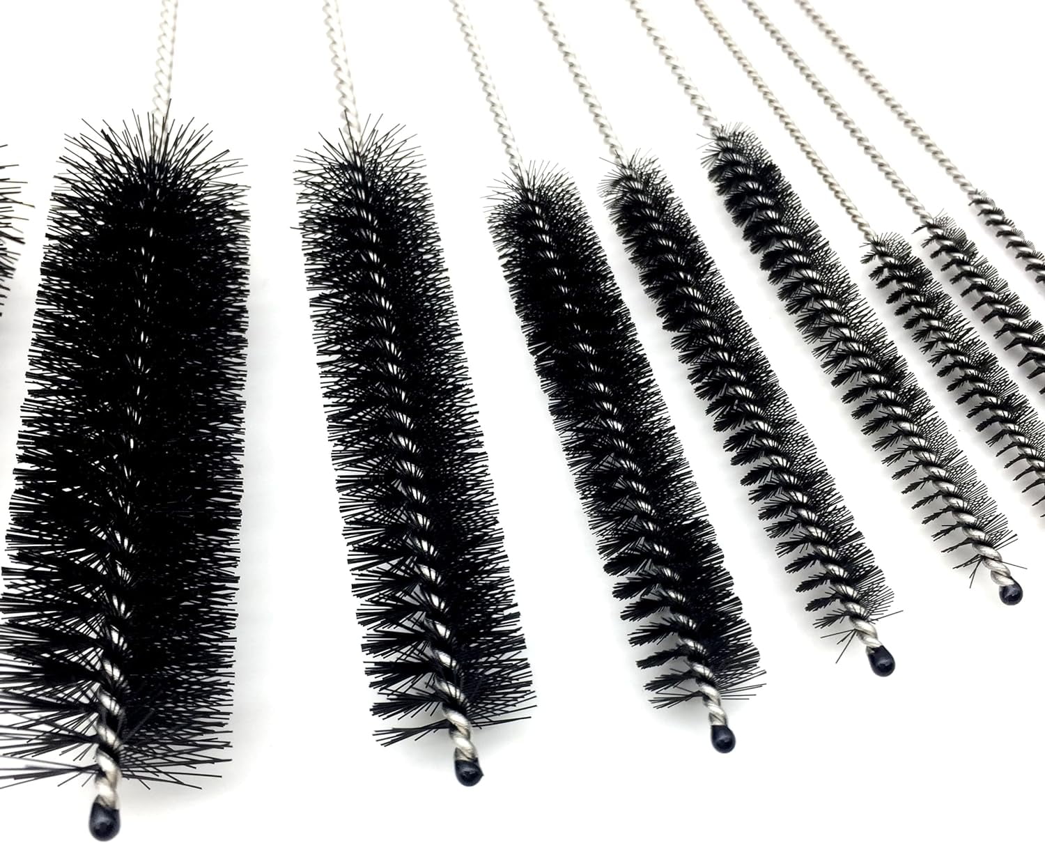 Quality Materials: made of high Quality stainless steel and durable nylon bristles; Multiple Sizes: set of 10 brushes with various diameters from 1/16 to 1 inch to meet different kinds of cleaning situation; Easy To Use: it generates foam easily; hard enough to scrub the dirty stuff while gentle enough to avoid scratching; Multipurpose: for cleaning reusable straws, funnel necks, tube or cylinder and other hard to access corners like tube/bottle with narrow necks;
