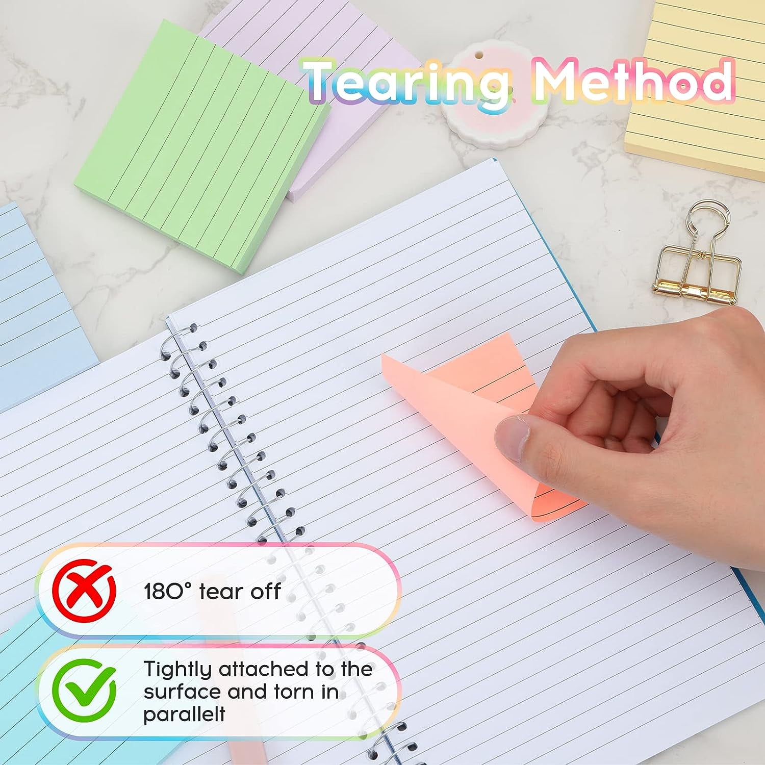 What you will get: 8 pads/pack, 100 sheets/pad, 800 sheets of sticky notes in total Dimensions: 3″ x 3″, lined sticky notes Light colors are more eye-catching, no need to worry about forgetting, different colors can meet your different moods and needs every day. Can be pasted on the wall, blackboard, computer, desktop, refrigerator and almost all other smooth surfaces. Material These sticky pads are made from high quality paper stock and the sturdy 80gsm stickers will not tear, curl or spill ink, using strong adhesive, not easy to fall off. Features Paste everywhere, not easy to fall No tape or tacks required; Sticks firmly and stays up to long time; Write,reposition and remove without leaving a sticky residue.