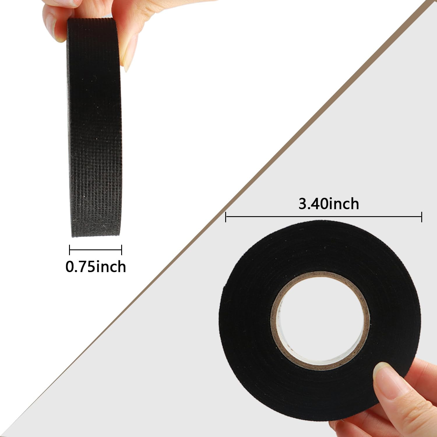 Automotive Cloth Anti Abrasion Tape, 4 Rolls 3/4x50ft Wire Harness Cloth Tape Strong Adhesion High Temp Wiring Loom Harness Protection Insulation Black