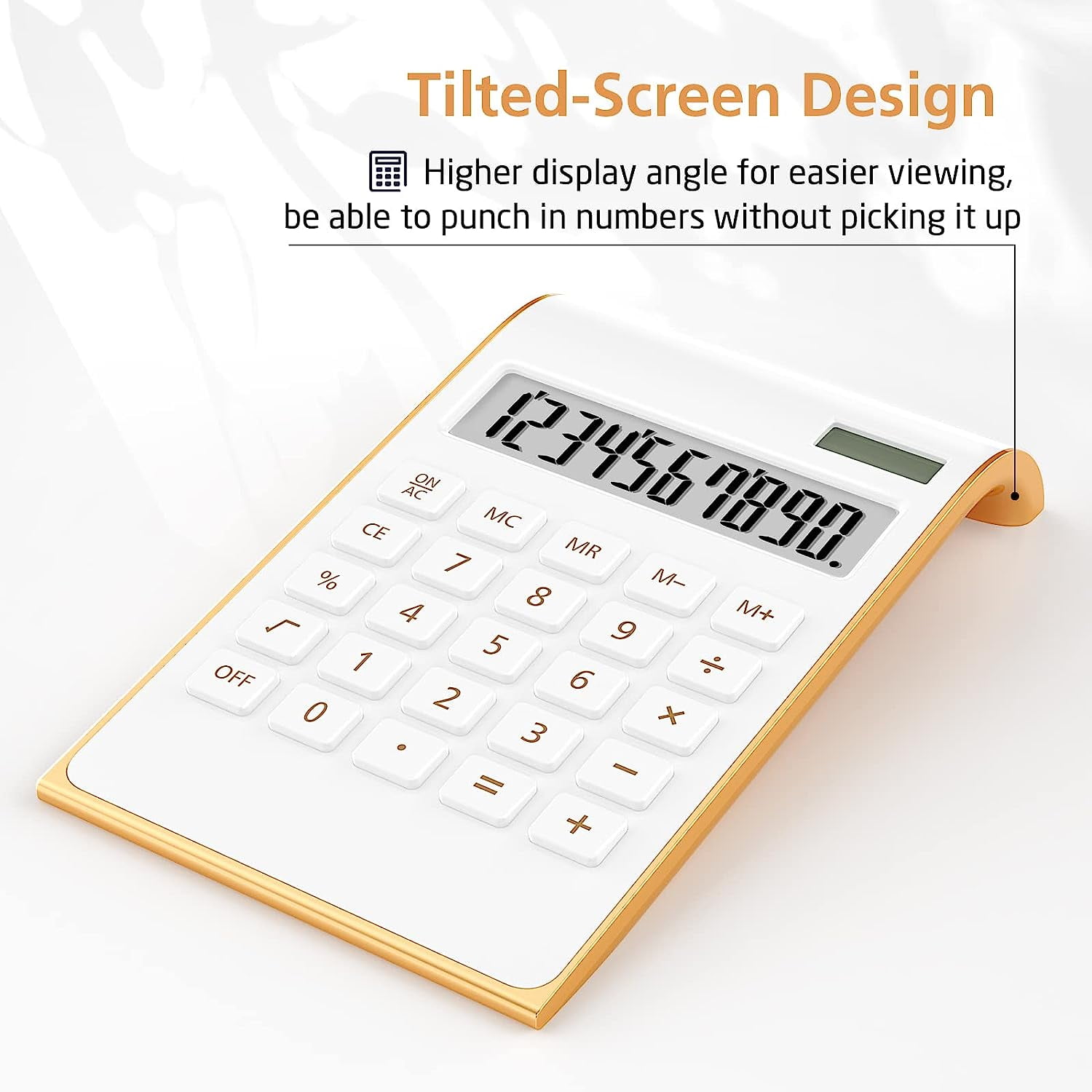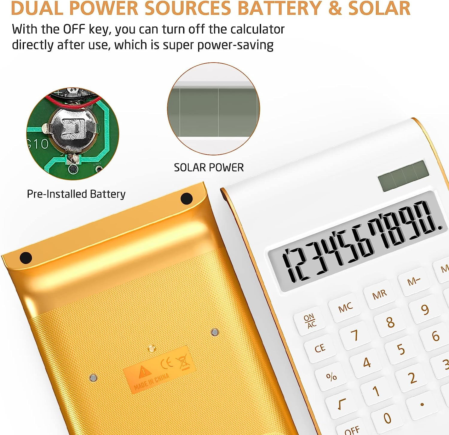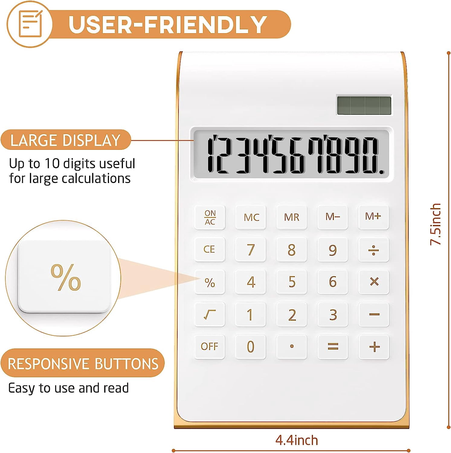 Calculators, Desktop Calculator with Large LCD Display, 10 Digits Solar Power Basic Office Calculator, Gold Office Desk Supplies and Accessories