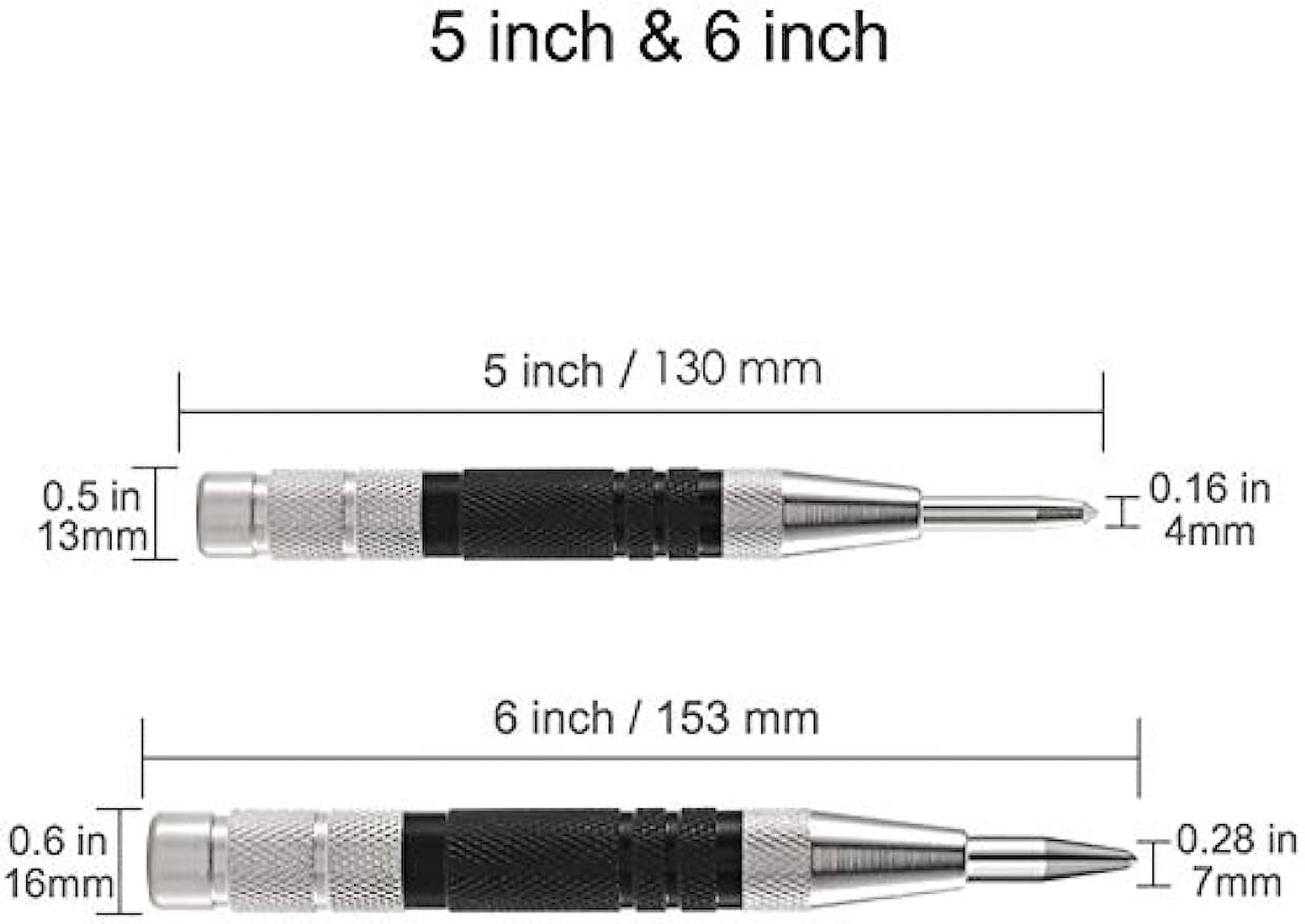 Center Punch – Automatic Super Strong Adjustable Impact, Center Hole Punch Tool, Marker Scriber Spring Loaded Center Hole Punch for Metal or Wood (2 Pcs – 6″ and 5″)