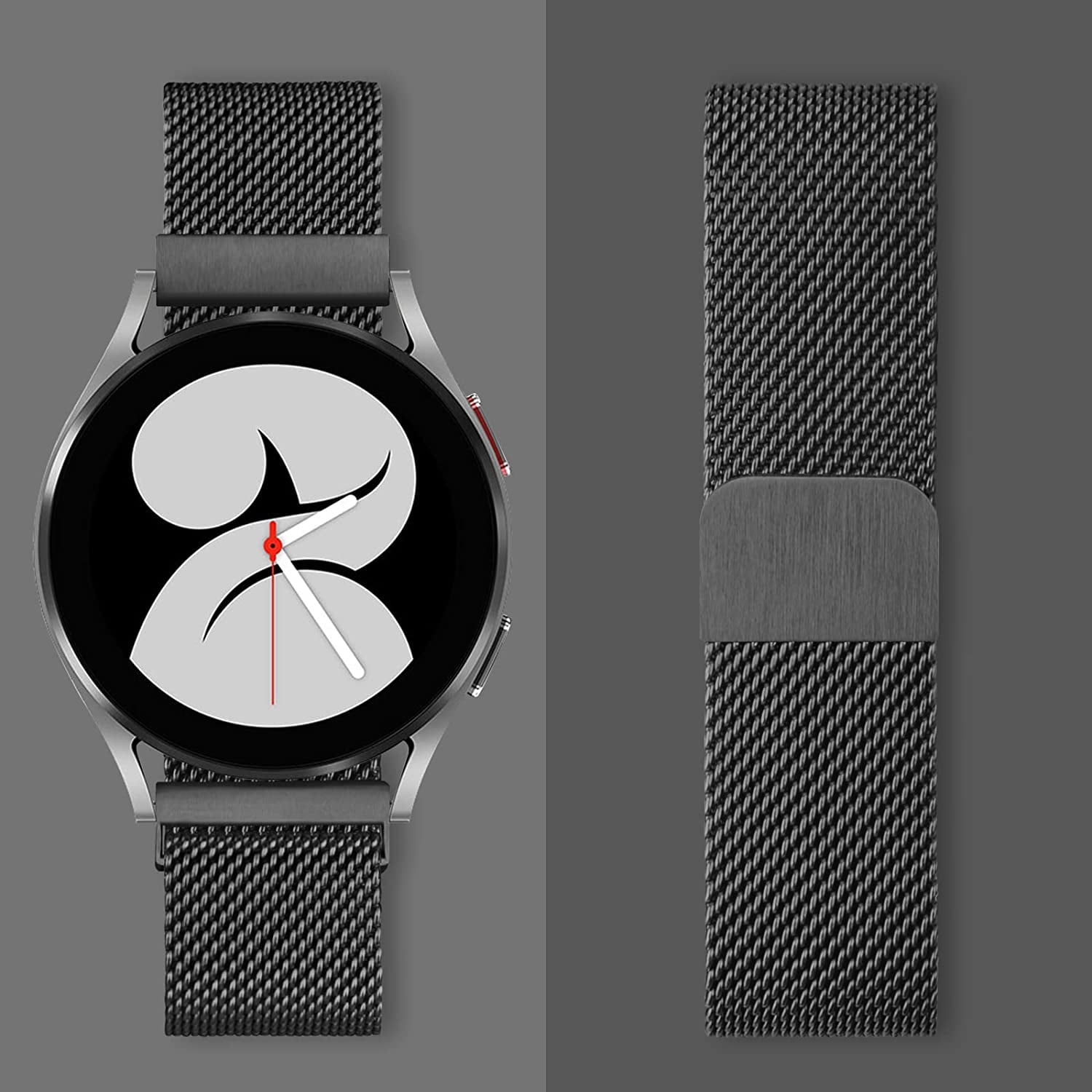 Magnetic closure 【COMPATIBLE MODELS】JINGYANG 20mm Quick Release Metal Bands Designed for Samsung Galaxy Watch 4 (40mm/44mm), Galaxy Watch 4 Classic (42mm/46mm), Galaxy Watch Active 2 (40mm /44mm), Galaxy Watch Active 40mm, Galaxy Watch 3 41mm, Galaxy Watch 42mm. Also fit for smart watch with 20mm width watch lugs. (Note: Please Check Your Watch Model Before Buy It. And No SmartWatch Included) 【COMFORTABLE MATERIAL】These Samsung Galaxy Watch 4 bands are made of fashionable & durable woven mesh stainless steel. Mesh Design makes this band more breathable and lightweight. It bring you a elegant and comfortable wearing experience, personalize your Galaxy Watch 4. Very soft and comfortable to wear. 【UNIQUE MAGNET CLASP DESIGN】The Size fit for 6.0″ -9.6″ (152mm-243mm) wrist. The clasp are made of stylish, elegant magnetic metal loop. No buckle needed,easy to stick and lock your bands. Band size can be freely adjusted according to the circumstance of individual wrist. Strong Magnetic buckle keeps band secure. 【EASY INSTALLATION】The quick-release spring bars on both ends of the bracelet are made with seamless connection technology, slide the pin into the notch of the watch and keep two sides of the connector locked to the watch, push the pin inward, slide the other end inside. 【ENJOY A 100% RISK-FREE SHOPPING EXPERIENCE】If you are not absolutely thrilled with our Galaxy Watch 4 metal watch bands, just contact us and we will issue a fast replacement or full refund of your money on-the-spot! No questions asked!