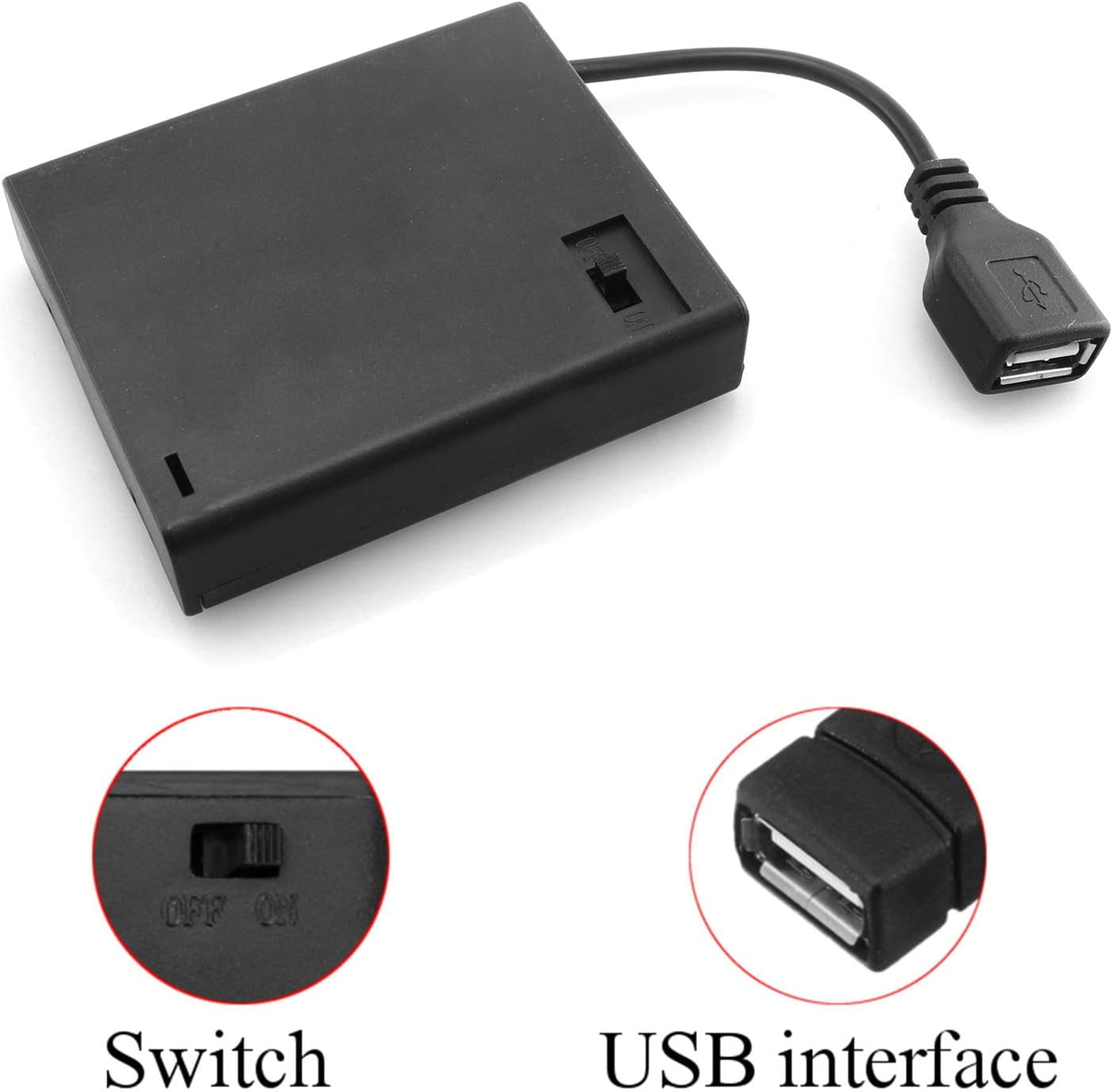 Product DescriptionSpecification: Product name: Battery Box Battery Model:AA Number of Bbatteries: 4 Output Voltage: 4.8V-6V Size: about 70x65x20mm / 2.8×2.6×0.8Inch (LxWxT) USB Cable Length: 26cm / 10.2Inch Wire Diameter: 3.0mm / 0.12Inch Switch: with switch Package Includes:1PC 4 AA Battery Case with On Off Switch Feature: With USB female plug, no soldering required, easy to connect. Can be used in toys, RC cars, lighted decorations, electronics projects, or anywhere else where you need to have 4.8V-6V DC power. Note: 1 The price is only the battery box, excluding batteries. 2 The small lid (inside) and the battery case are hot-melt, and there are welding marks. This is a normal technique.