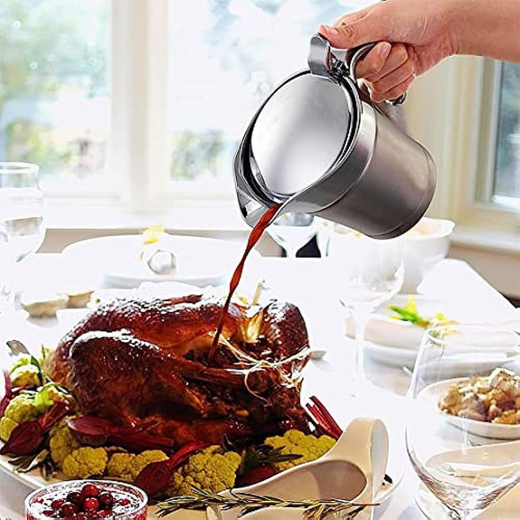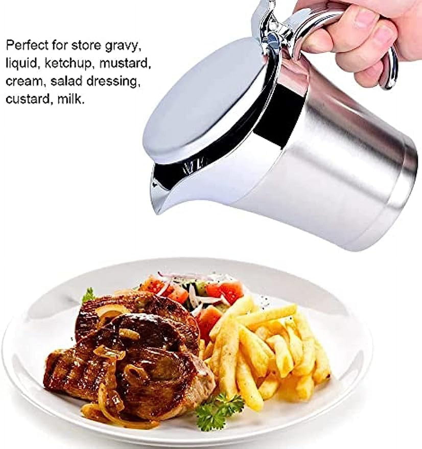 304 Stainless Steel Double Insulated Gravy Boat 16 oz with Hinged Lid,Sauce Jug and Steak Sauce Pot Double Walled Insulated Thermal (16 oz/450ml)